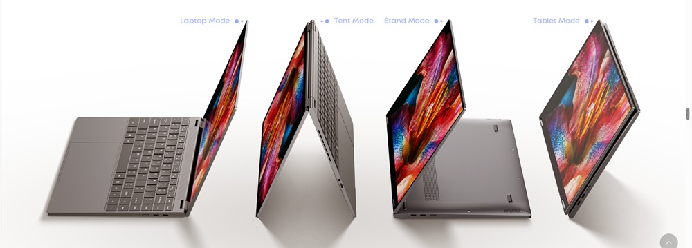 - 360° flexibiliteit: laptop, tablet en meer. Met de YOGA Modus kan het scherm 360° draaien, waardoor het moeiteloos kan wisselen tussen een laptop met touchscreen en een tablet. Met het flexibele scharnier zet je het apparaat in de perfecte hoek voor de beste kijkervaring, of dat nu de laptopmodus, de tabletmodus, de tentmodus of de standmodus is: