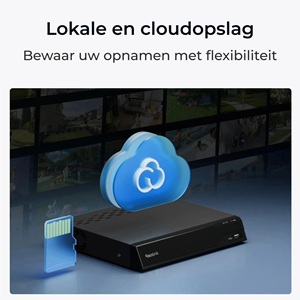 - Lokale opslag tot 512GB, NVR of Home Hub en Cloud ondersteuning.