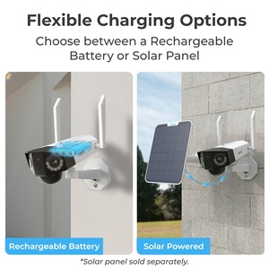 - Heeft een langdurig werkende, oplaadbare batterij maar werkt ook met Reolink Solar Panel voor non-stop stroomvoorziening (niet meegeleverd);