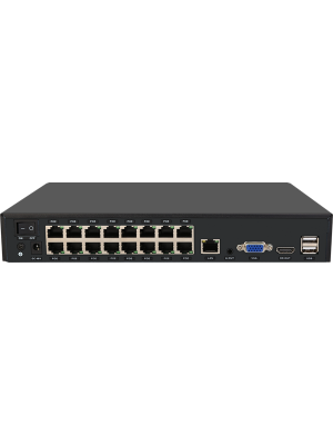- PoE-recorders hebben een ingebouwde PoE-switch waar PoE-camera’s direct op aangesloten kunnen worden. De recorder voorziet de aangesloten camera’s van stroom via PoE
