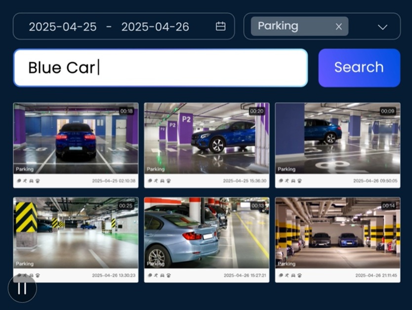 Vind razendsnel relevante beelden met de AI-gestuurde videozoekfunctie, je hoeft niet meer eindeloos uren aan videomateriaal door te spitten. Deze slimme technologie analyseert lokaal opgeslagen opnames van alarmgebeurtenissen en herkent personen of objecten aan de hand van specifieke kenmerken. Geef simpelweg een korte omschrijving op, zoals ‘blauwe auto’ of ‘persoon op een motor’, en de juiste beelden worden direct weergegeven.