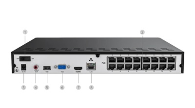 | Netwerk interface | 1x RJ45, 10/100/1000Mbps zelfaanpassend (voor LAN/WAN) 16x RJ45, 10/100 Mbps zelfaanpassende PoE Ethernet-interface (voor IP camera's) |