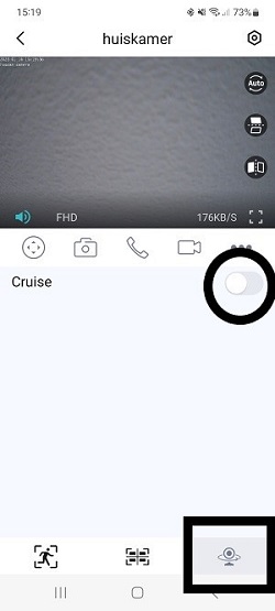 Daarnaast kun je met je Pan-Tilt camera 'cruisen'. Je kunt via de app rondkijken (horizontaal en verticaal) in het gebied dat je camera bestrijkt. Hiervoor moet je eerst de optie 'Cruise' activeren.