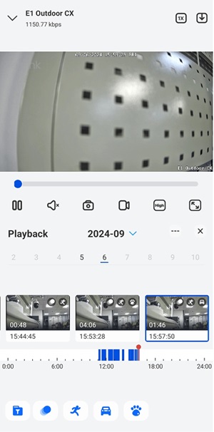 | Het pictogram van de rennende man geeft aan dat er een bewegende persoon is gedetecteerd: | Je kunt bewegingsopnames van bepaalde typen vinden, zoals van personen en huisdieren. Opnames van het geselecteerde type worden boven de tijdlijn weergegeven: |