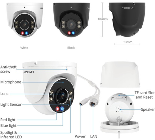 | Opslag | Opslag | Ondersteunt Micro SD kaart (max 512GB), lokale en FTP opslag, Foscam Cloud |