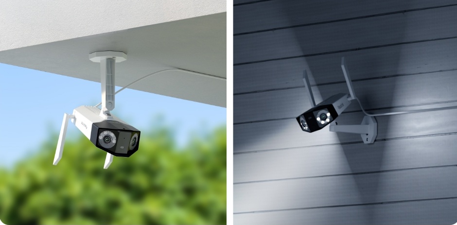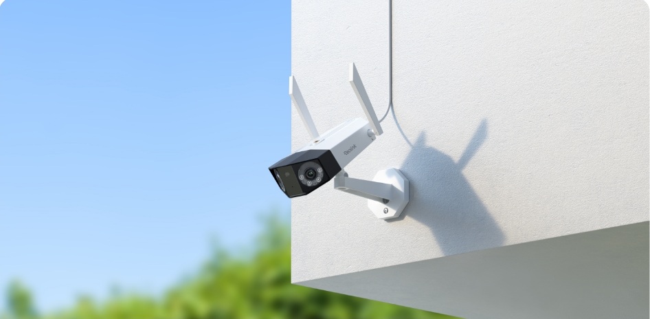 Deze WiFi 6-camera beschikt over 2 lenzen waardoor je een ultra brede kijkhoek hebt van 180°! Geeft mooie afbeeldingen met de dubbele kijkhoek en zonder 'blinde vlekken'. Identificeert gezichten, kentekenplaten en meer met verbluffende precisie, zelfs op grote afstand.